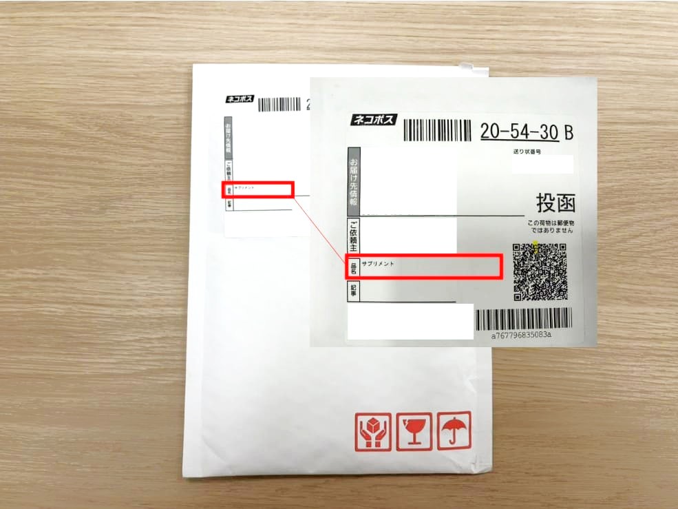 お薬が届く際の梱包にも細やかな配慮がなされています。配送時の品名表記が「サプリメント」となっているため、同居されているご家族に知られるリスクを抑えることが可能です。